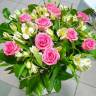 Объёмный букет цветов из альстромерий и роз. Этот букет является хорошим подарком для девушек, женщин и семьи. Обычно его дарят на такие праздники как День Рождения.